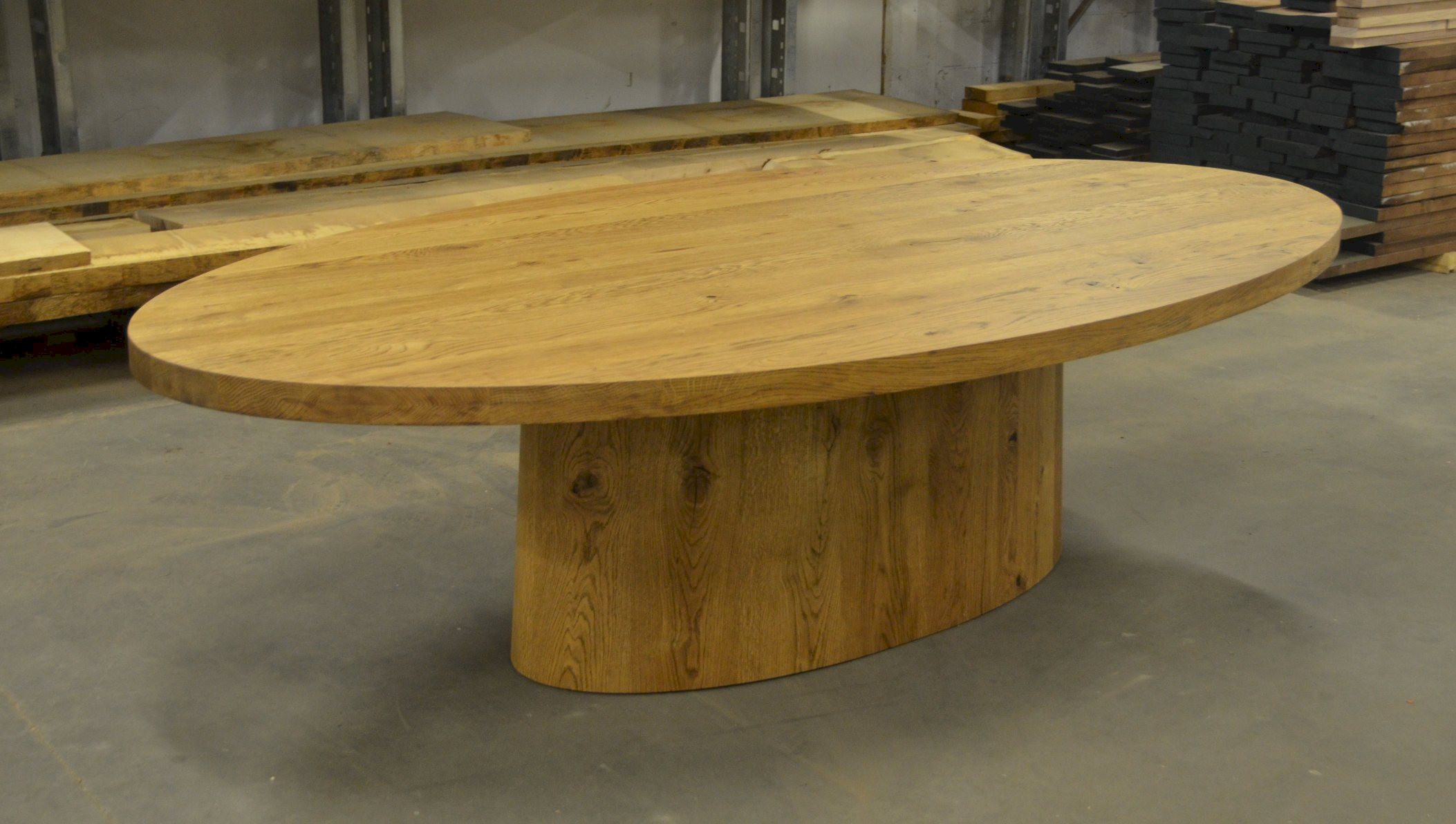 Ellipsvormige tafel in rustieke eik